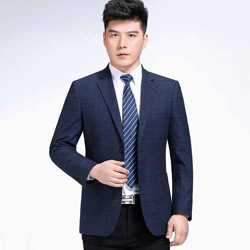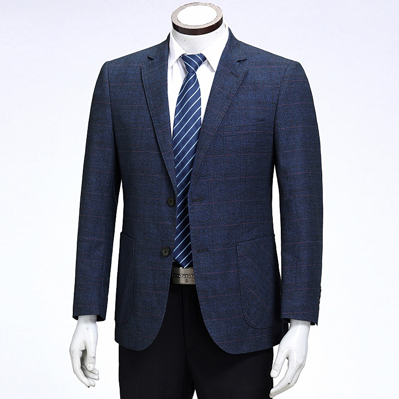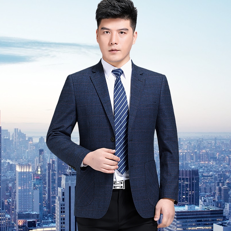 秋裝品牌中年男士羊毛免燙西服商務休閑男裝格子單件西裝外套上衣