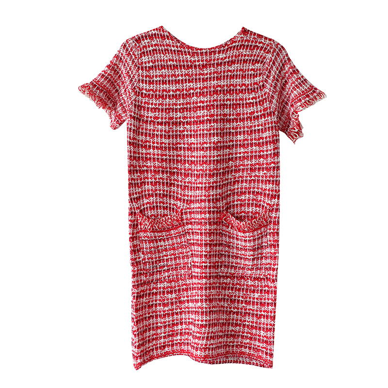 / 裙子女夏2018新款名媛氣質紅色針織慵懶風中長款格子連衣裙