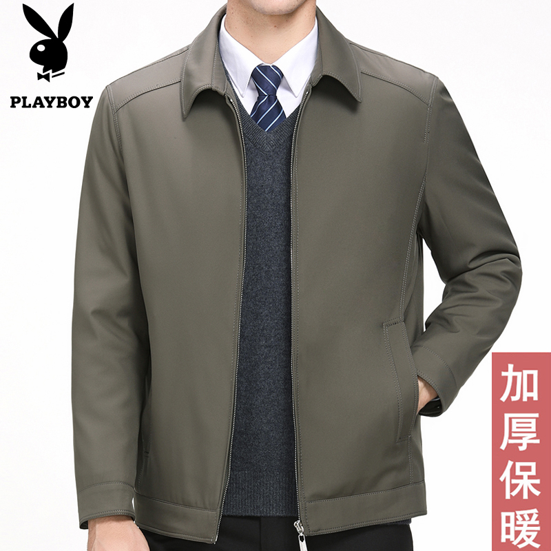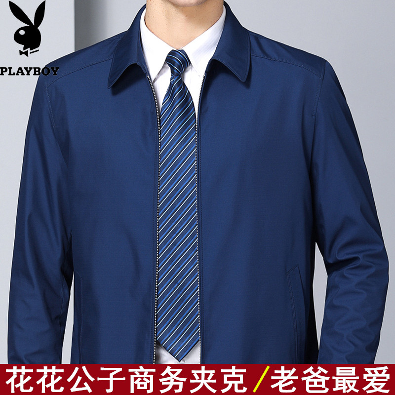 / 秋裝新款花花公子中年男士夾克衫休閑品牌男裝翻領夾克外套男上衣