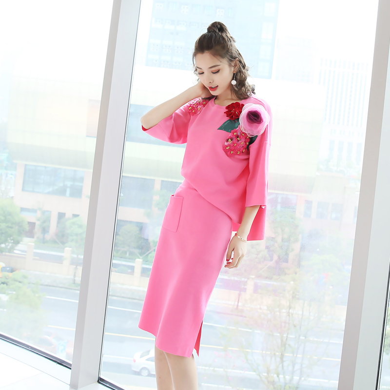 2018春裝新款修身包臀半身裙針織衫裙子兩件套裝女裝時尚潮