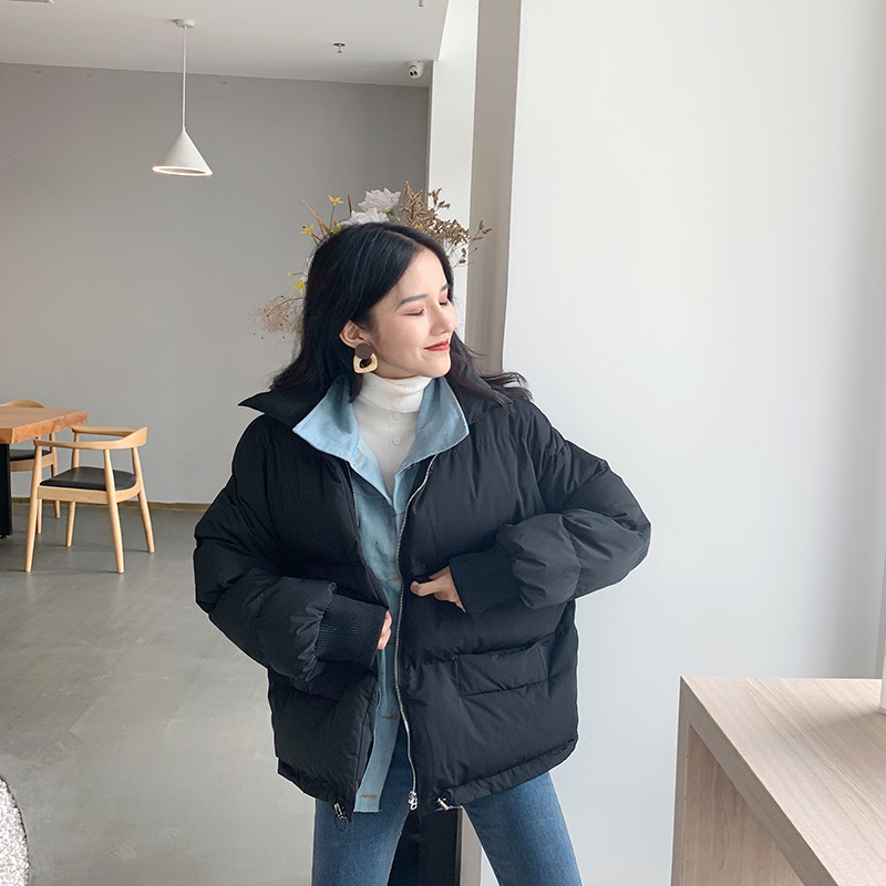 / 棉服女秋冬新款韓版chic復古寬松百搭面包服假兩件長袖開衫外套潮