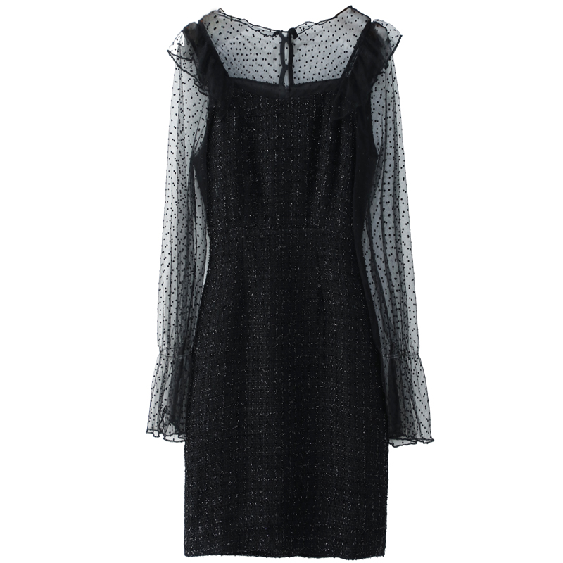 / 2018秋季新款氣質修身顯瘦網紗拼接裙子名媛風毛呢小香連衣裙女潮