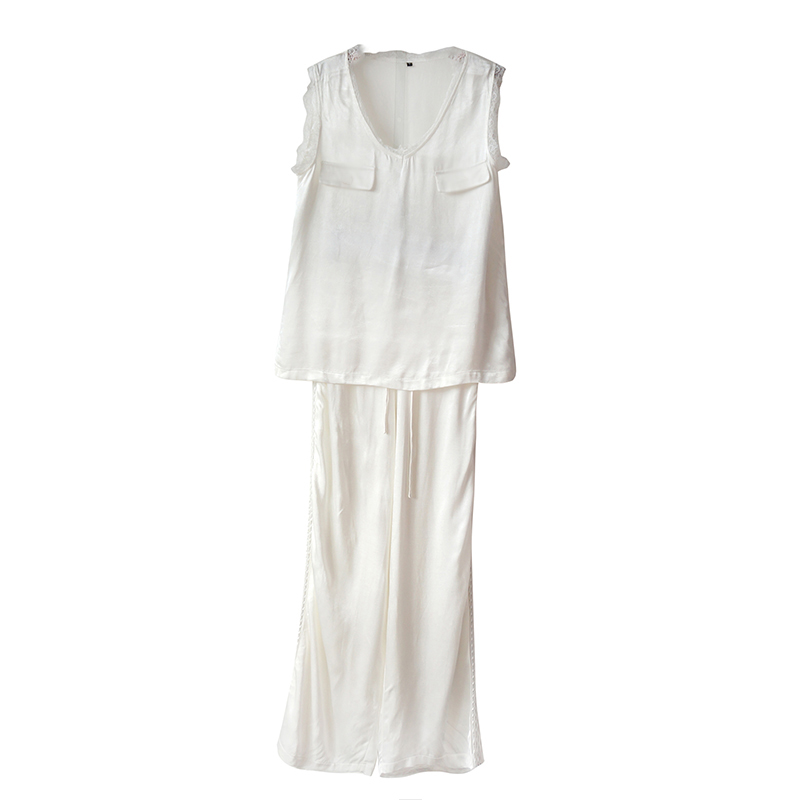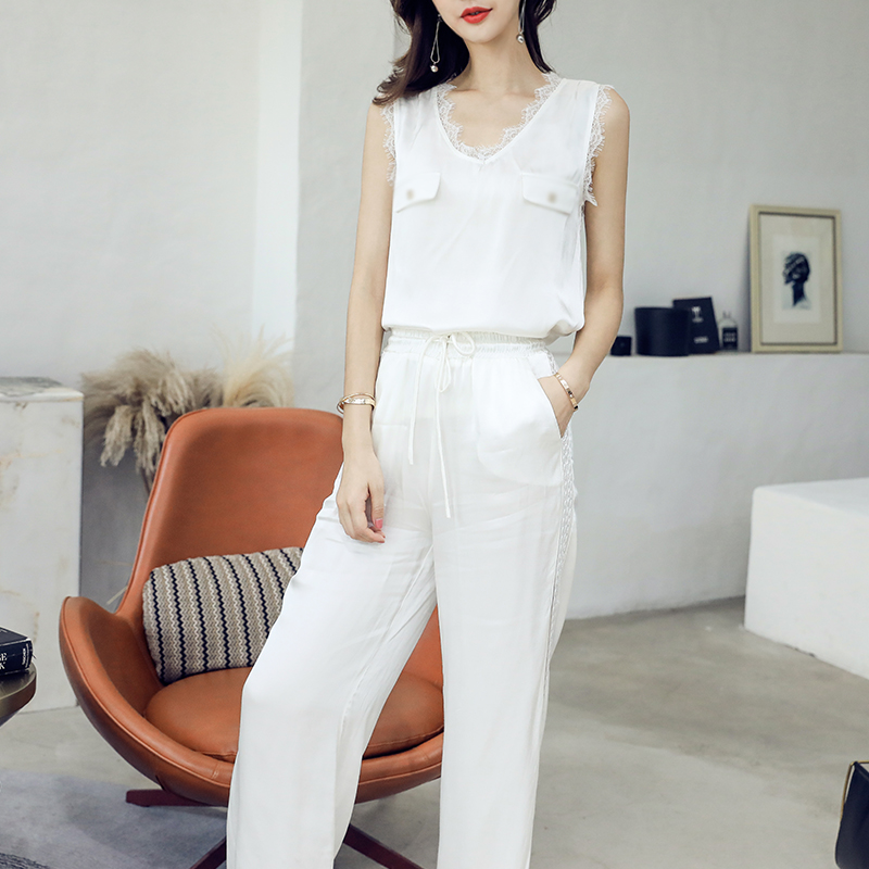 / S秀時尚氣質套裝2018夏季新款女裝V領無袖休閑上衣闊腿褲兩件套