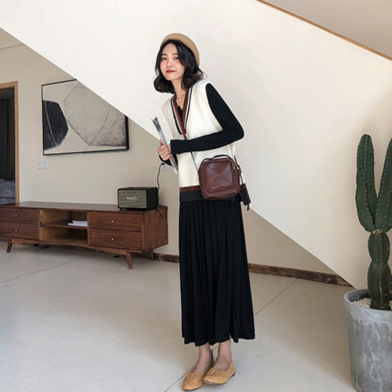 / 毛衣配加連衣裙子女法式氣質桔梗裙復古針織山本風長款兩件套裝冬