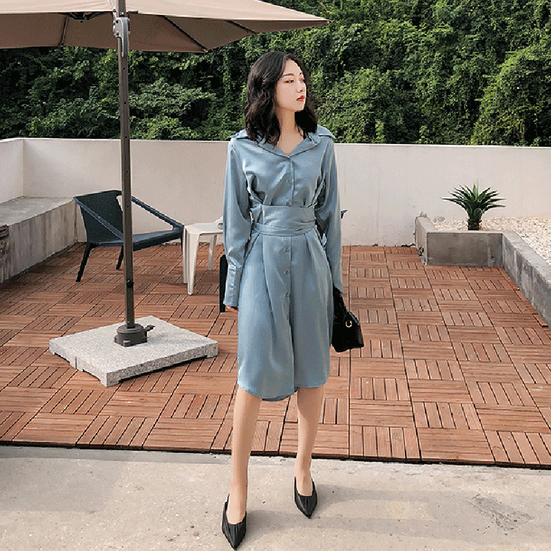 秋裝女2018新款連衣裙chic早秋裙韓范收腰長袖裙子pphome文藝長裙