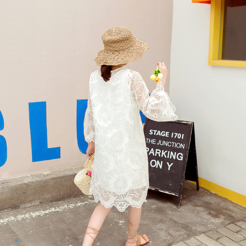 白色連衣裙春夏裝新款韓版女裝鉤花鏤空蕾絲寬松兩件套裙子潮