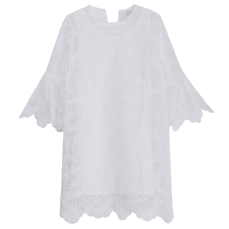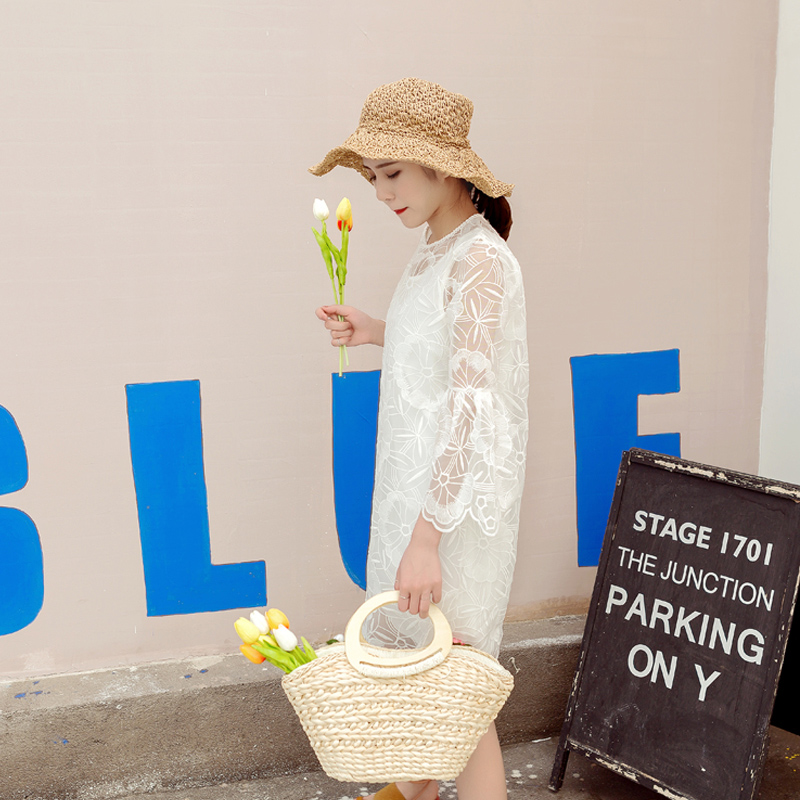 通身的樹葉花紋鏤空,小刺繡,花邊點綴,算是比較韓系的風格,又帶一點甜美范