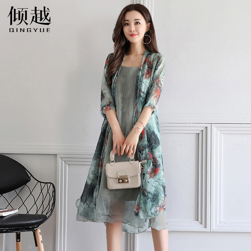 / 傾越時尚套裝女連衣裙中長款2017夏裝新款韓版顯瘦氣質兩件套裝潮