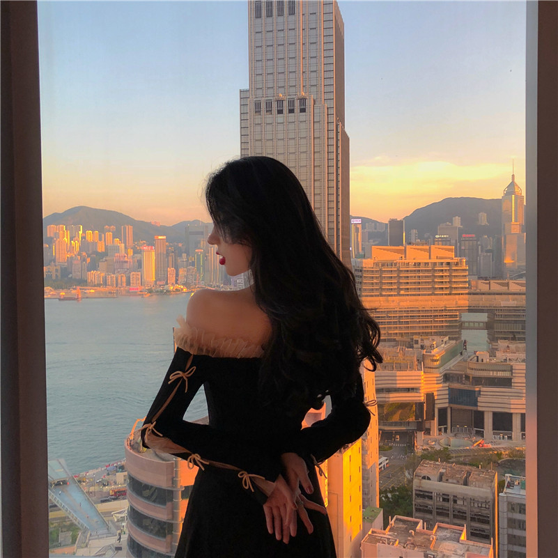 露肩,花邊,版型修飾身材,而面料的黑色可以掩蓋