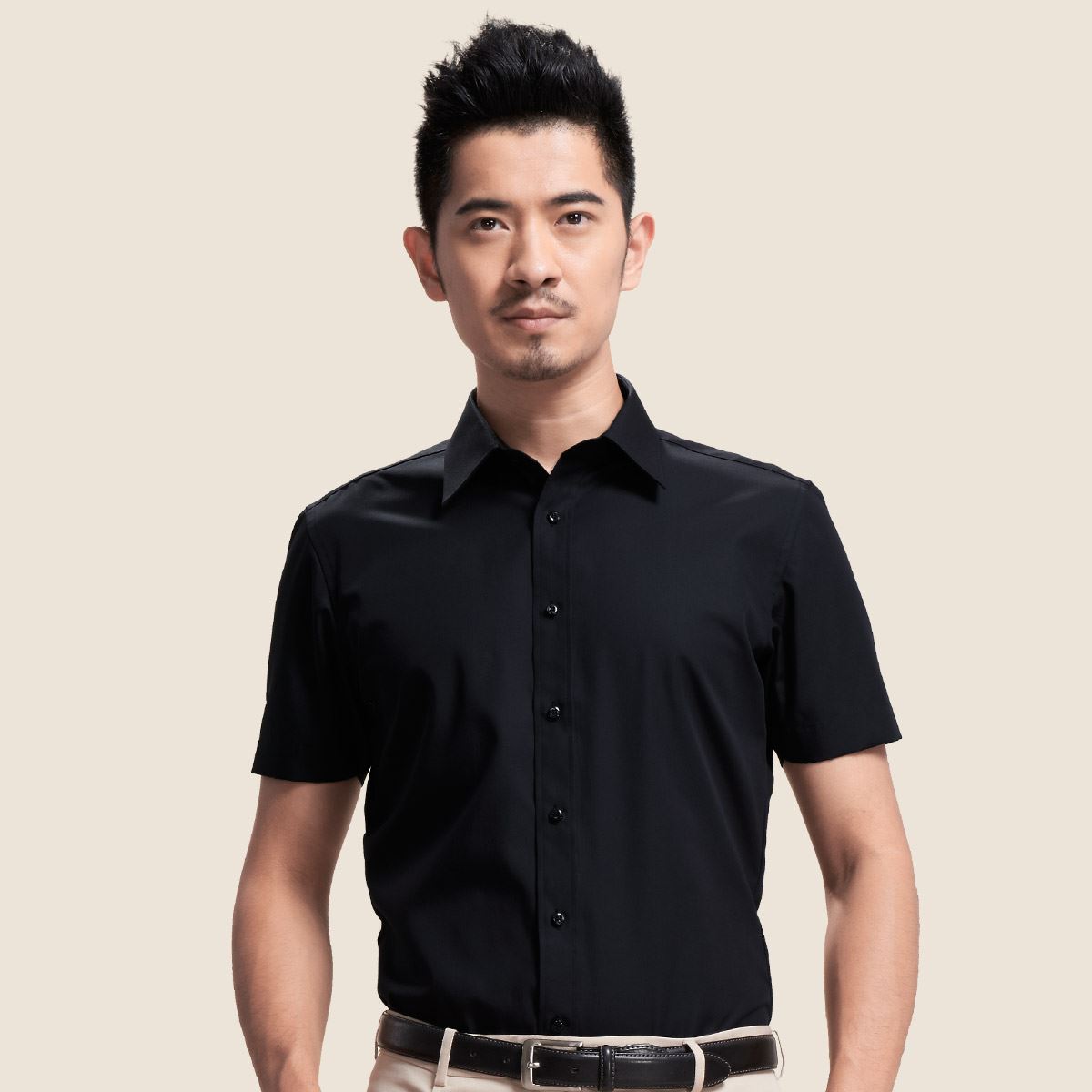 夏季新品深海絲光棉男士短袖襯衫商務正裝黑白色職業襯衣純棉男裝