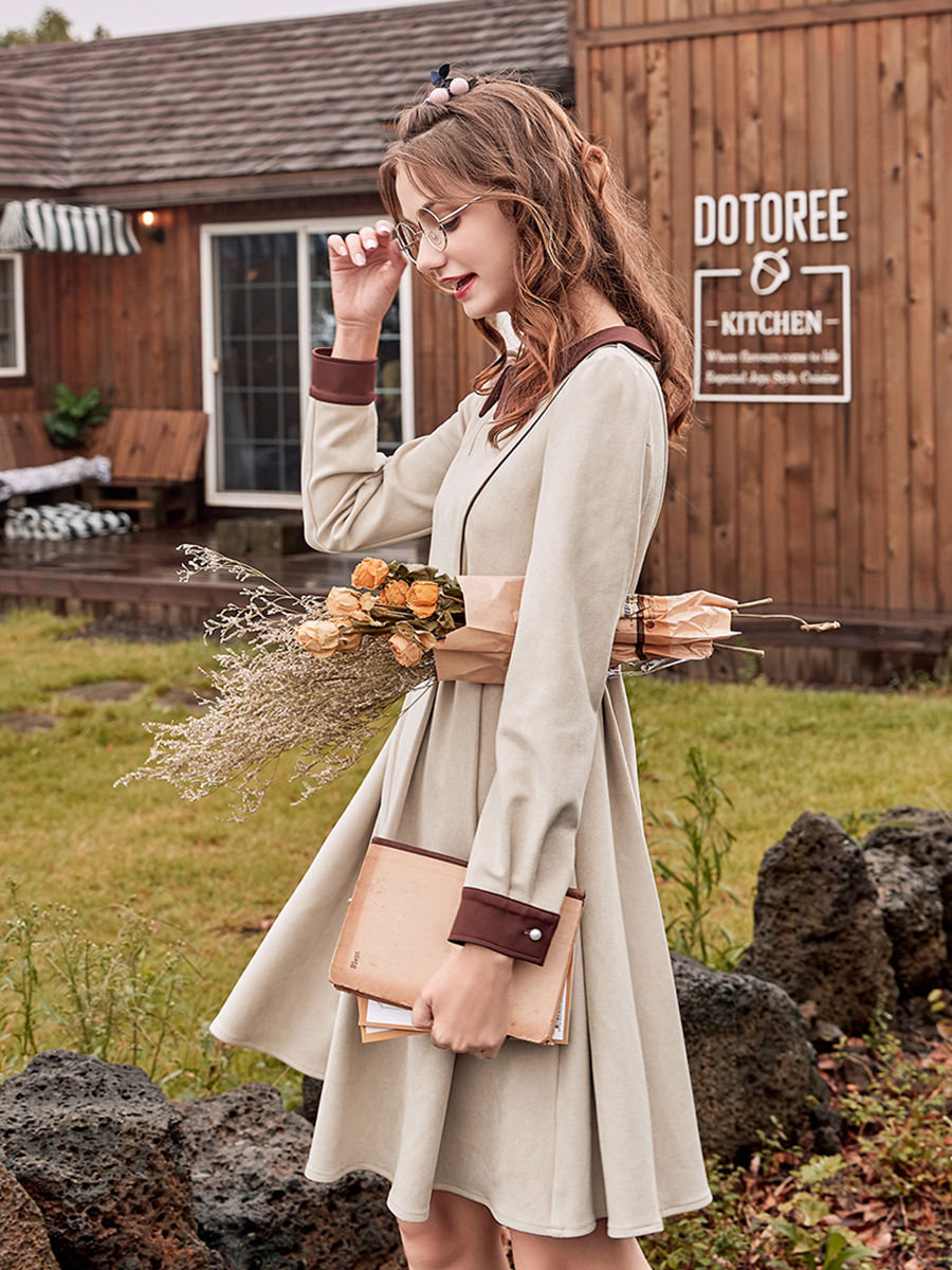 MG小象復古氣質連衣裙女秋冬2018新款娃娃領收腰中長款chic裙子潮