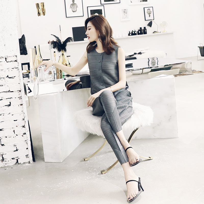/ 2018夏裝韓版新款歐美時尚休閑無袖上衣松緊收腰哈倫九分連體褲女