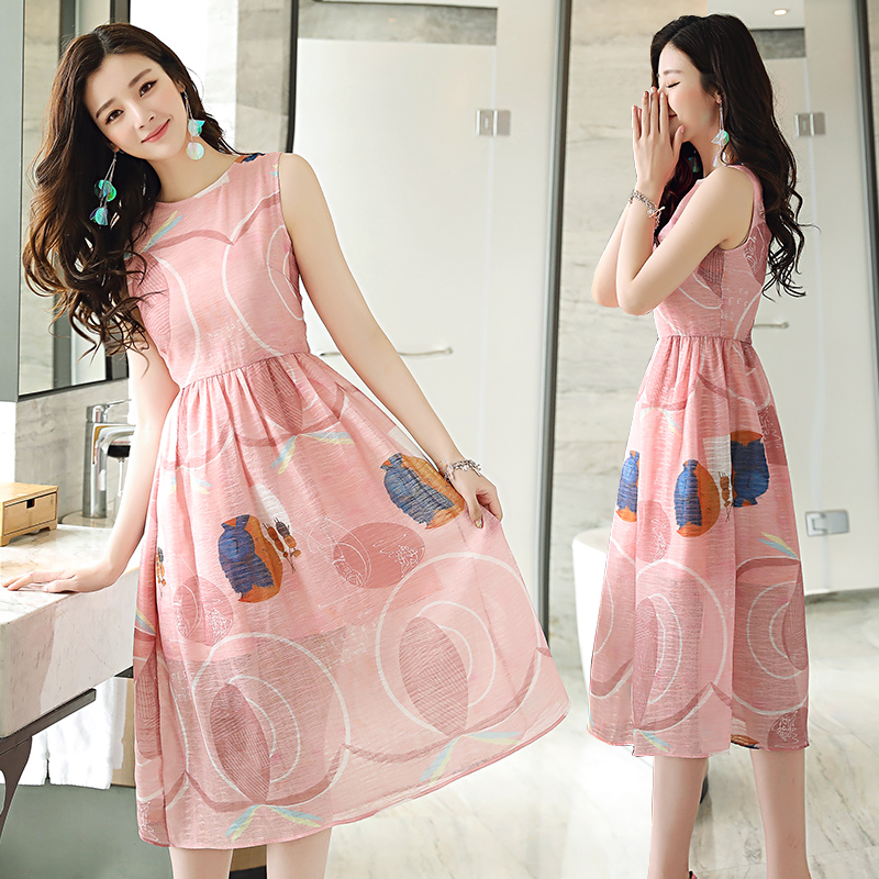 連衣裙女中長款2017夏季新款韓版氣質荷葉邊修身公主裙雪紡a字裙