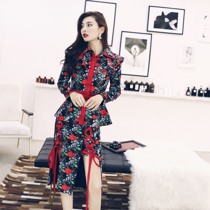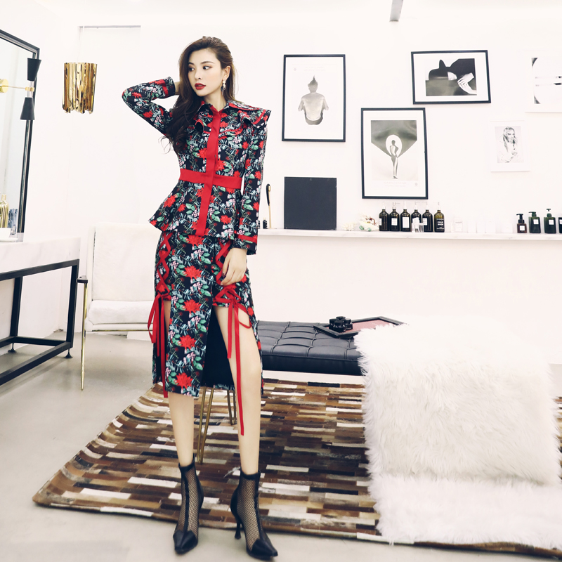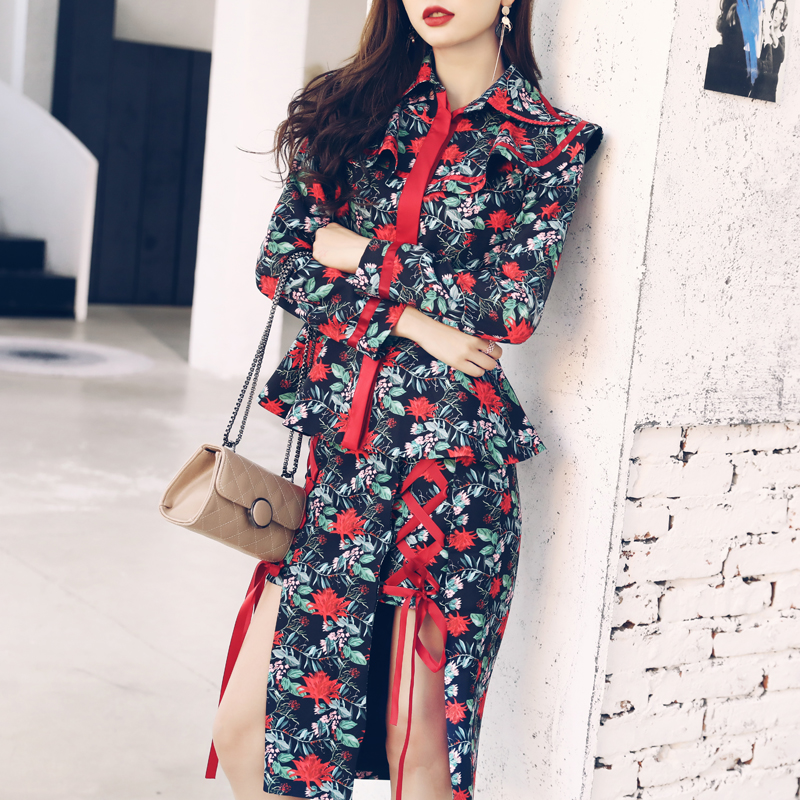 / 高端女裝網紅同款連衣裙女印花不規則半身裙碎花上衣兩件套裙套裝
