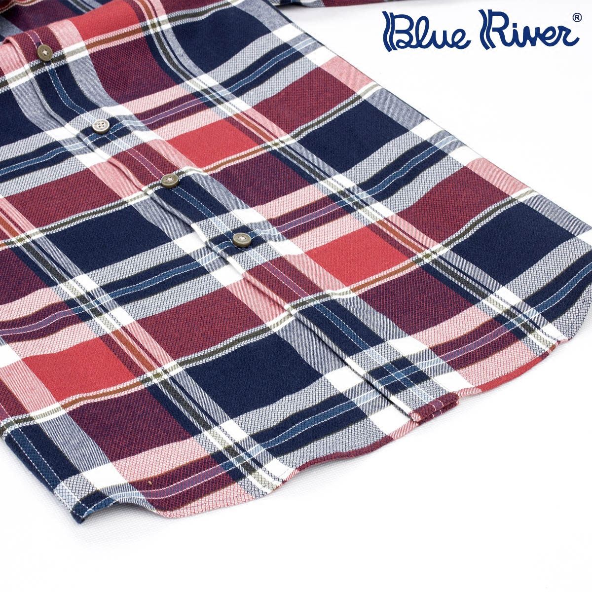 / 藍河紅色格子襯衫男長袖修身彩色格紋保暖天絲棉襯衣2018秋新品