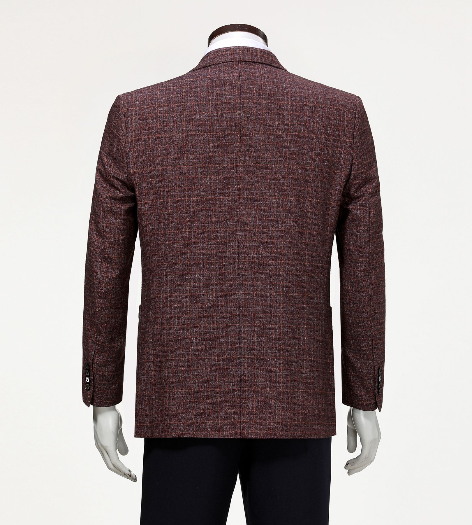 / 春裝新款品牌中年男士羊毛西服休閑男裝免燙抗皺格子單件西裝外套