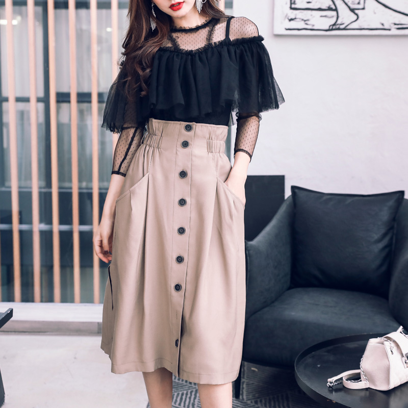 淑女網紅2018秋季新款氣質名媛蕾絲上衣時尚高腰半身裙兩件套裝女