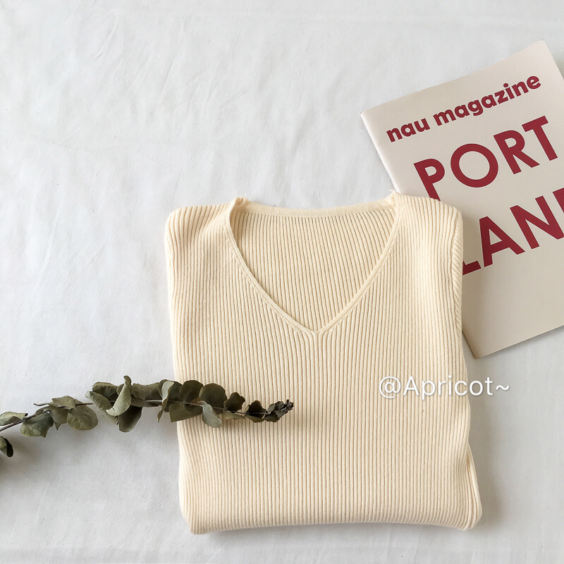 / 韓版氣質V領針織長袖修身緊身保暖打底衫上衣復古套頭顯瘦毛衣女