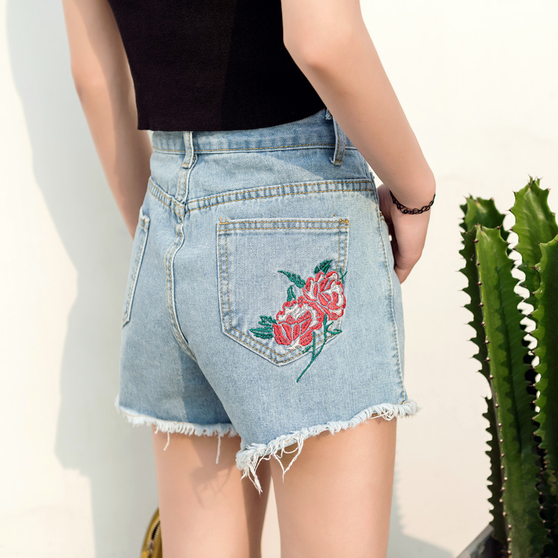 / 高腰牛仔短褲女裝春夏季新款毛邊寬松韓版刺繡花破洞熱褲