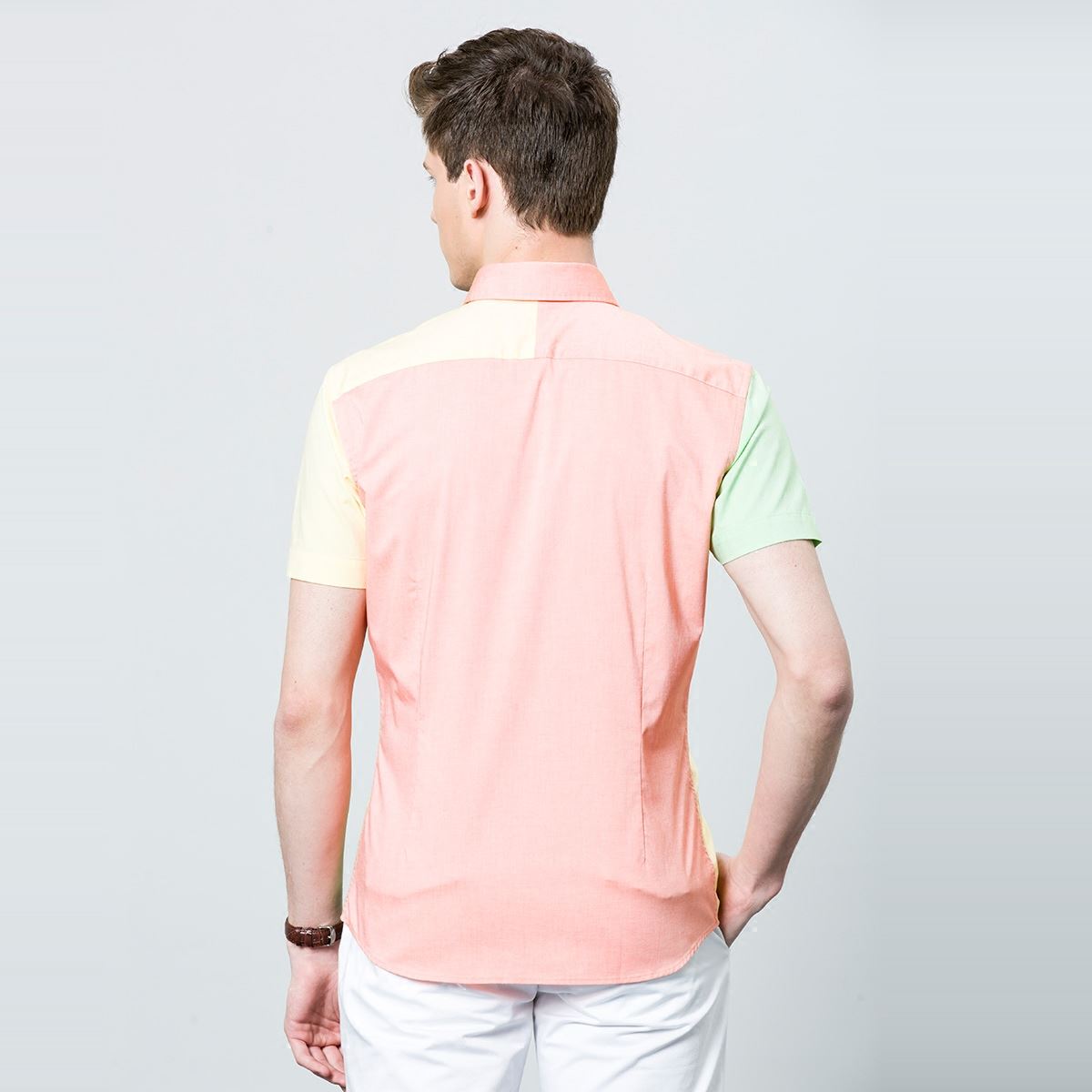 / 新款夏季男短袖襯衫時尚拼接修身純棉舒適牛津紡新品半袖襯衣