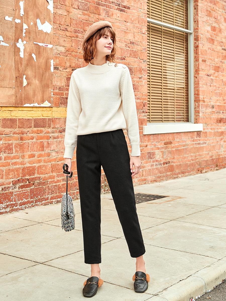 MG小象高腰休閑褲女修身顯瘦小腳西裝褲秋冬新款2018學生韓版褲子
