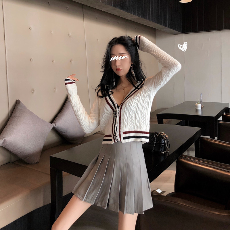 / 新款chic時尚套裝秋冬學院風減齡少女修身針織開衫短裙百搭兩件套