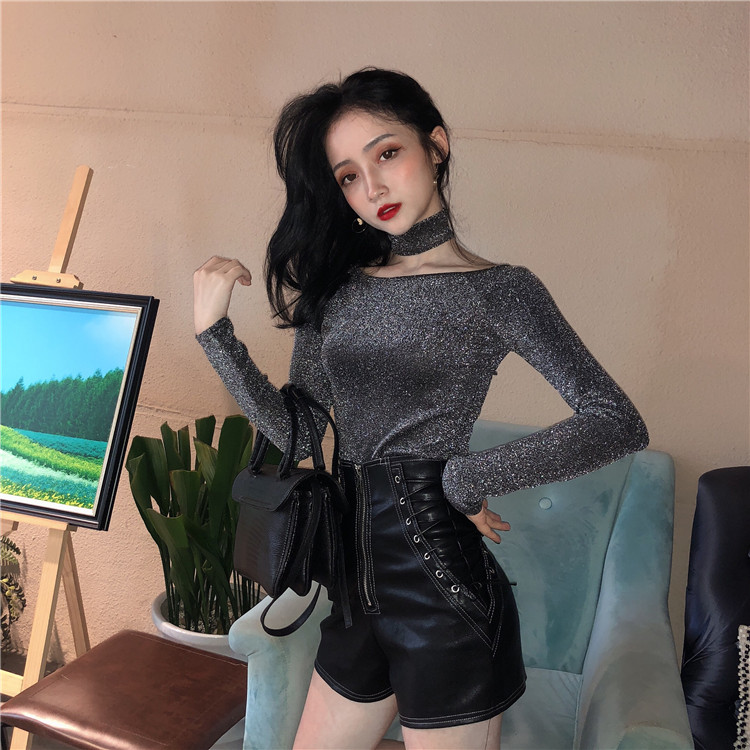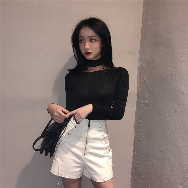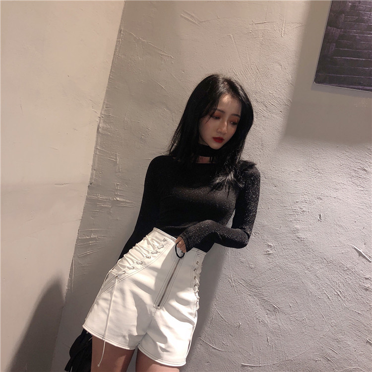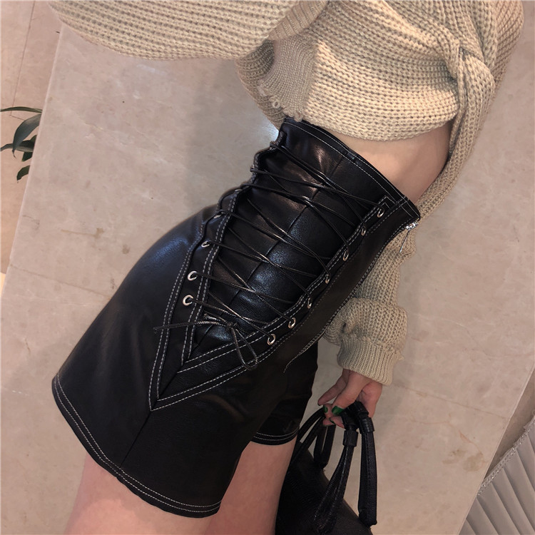 / 褲子新款韓版港味高腰顯瘦百搭氣質chic秋冬抽繩設計感皮褲短褲女