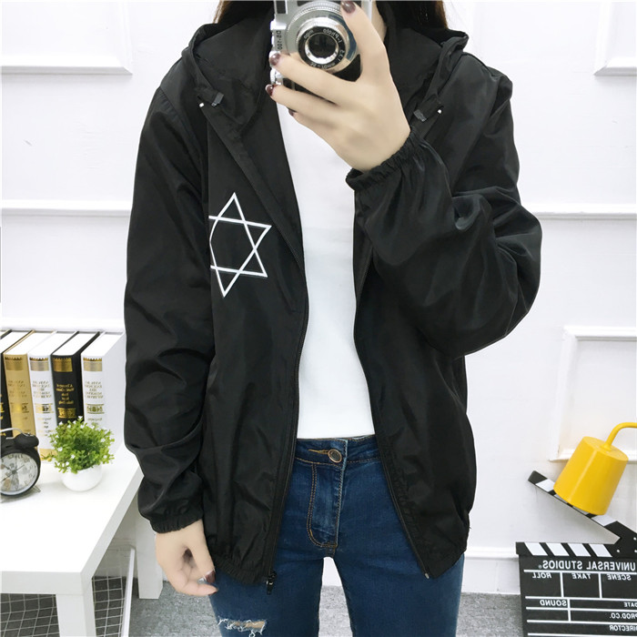/ 2017夏季新款寬松防曬衣女百搭學生連帽短款原宿風bf外套薄上衣潮