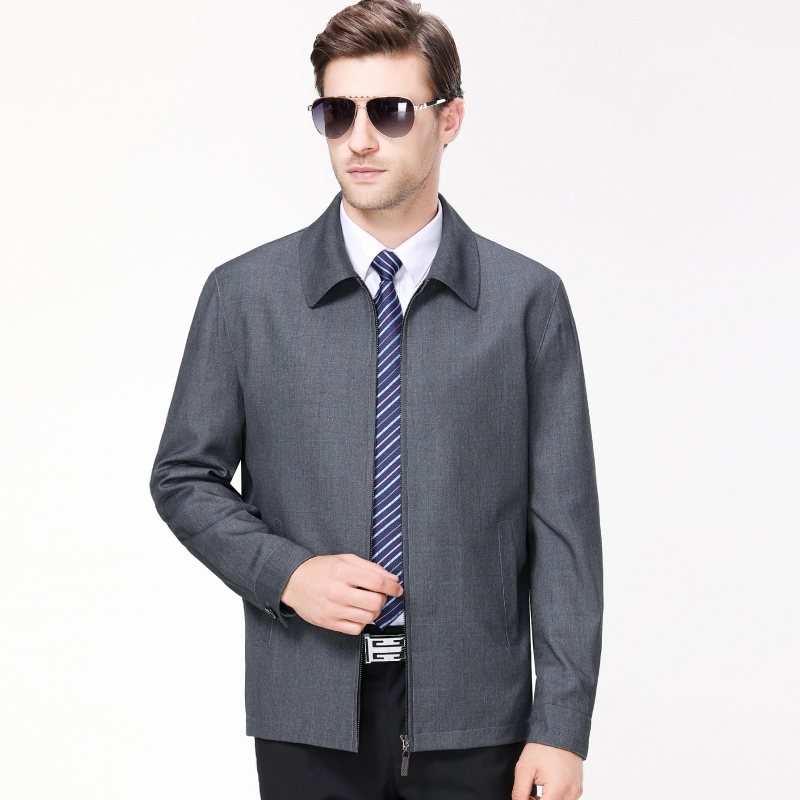 / 2018新款秋裝品牌中年男士夾克商務男爸爸裝翻領格子外套薄款大碼