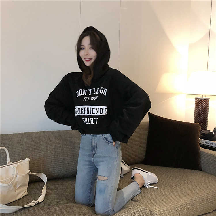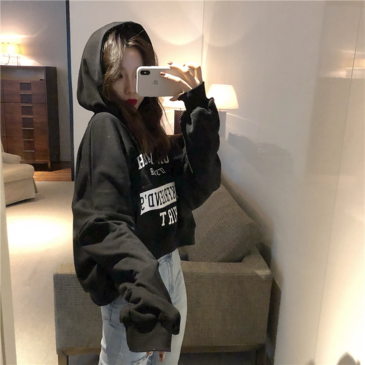 / 小清新短款上衣女裝韓版時尚chic秋冬新款連帽加厚印花字母衛衣潮