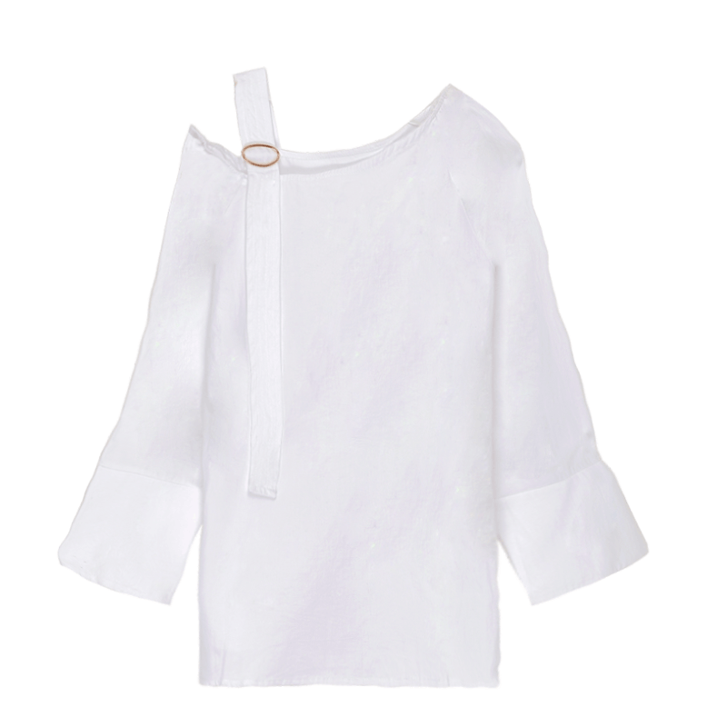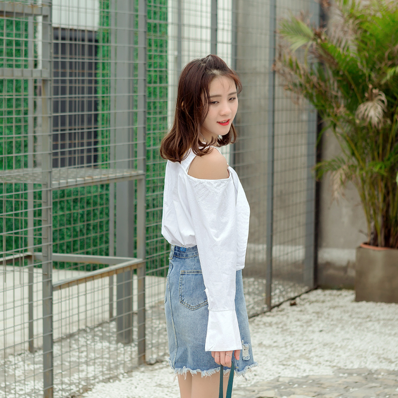 / 春夏裝新款韓版女裝學院風白色襯衫一字領露肩吊帶襯衣上衣潮