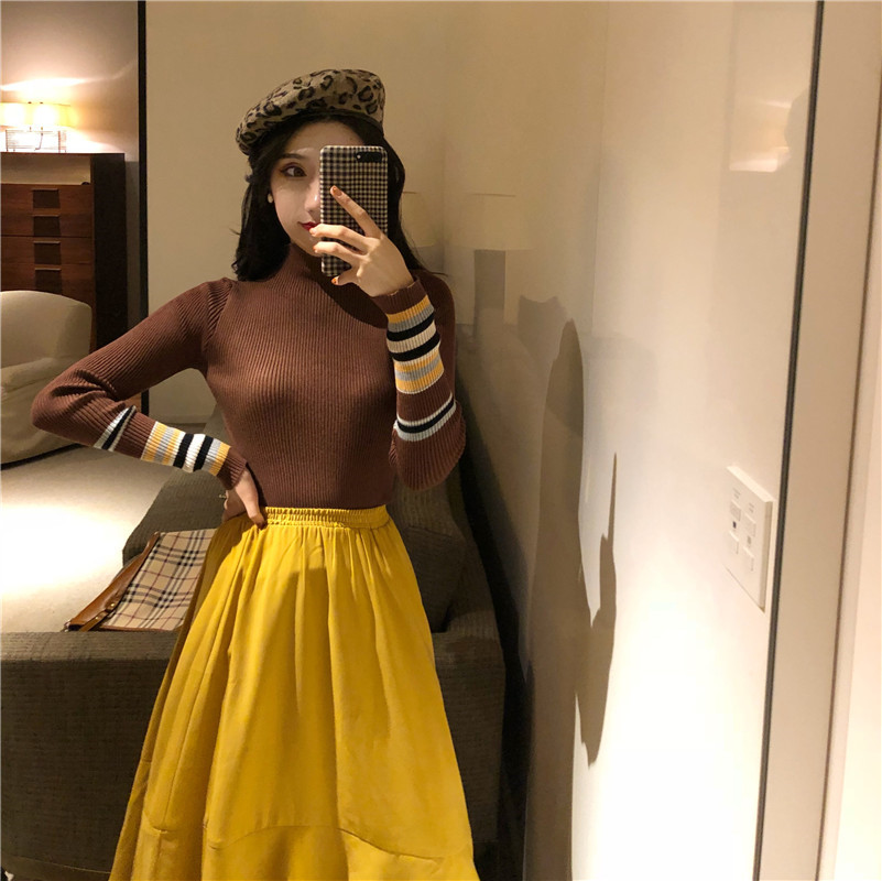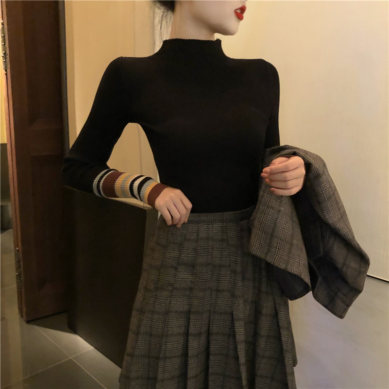 / 半高領毛衣女加厚秋冬新款短款修身彈力顯瘦百搭套頭針織打底衫潮