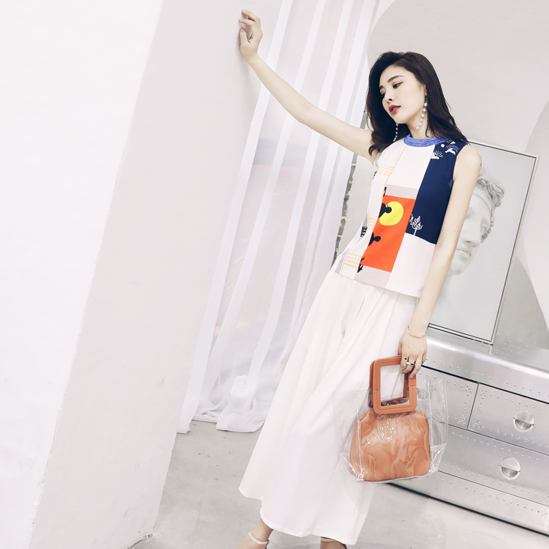 s秀洋氣名媛套裝女夏2018新款歐洲站闊腿褲無袖上衣時尚兩件套裝