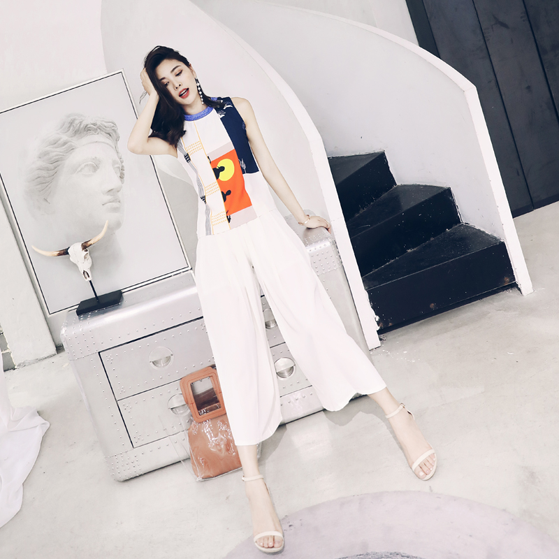 / s秀洋氣名媛套裝女夏2018新款歐洲站闊腿褲無袖上衣時尚兩件套裝
