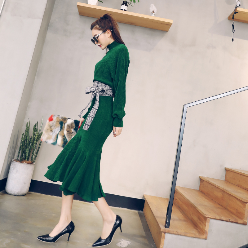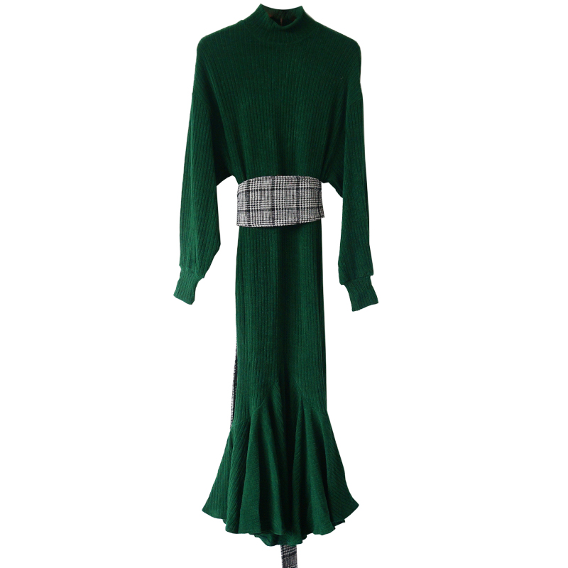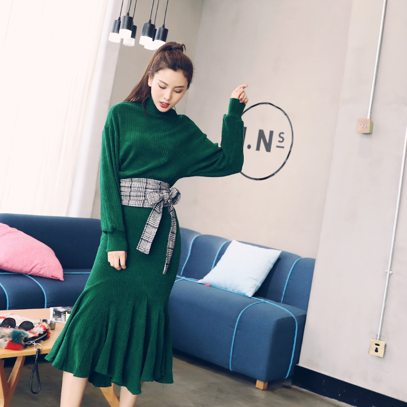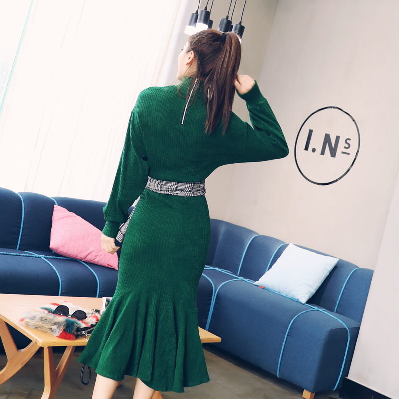 / 名媛針織連衣裙女長款秋冬韓版修身內搭復古網紅魚尾打底毛衣長裙