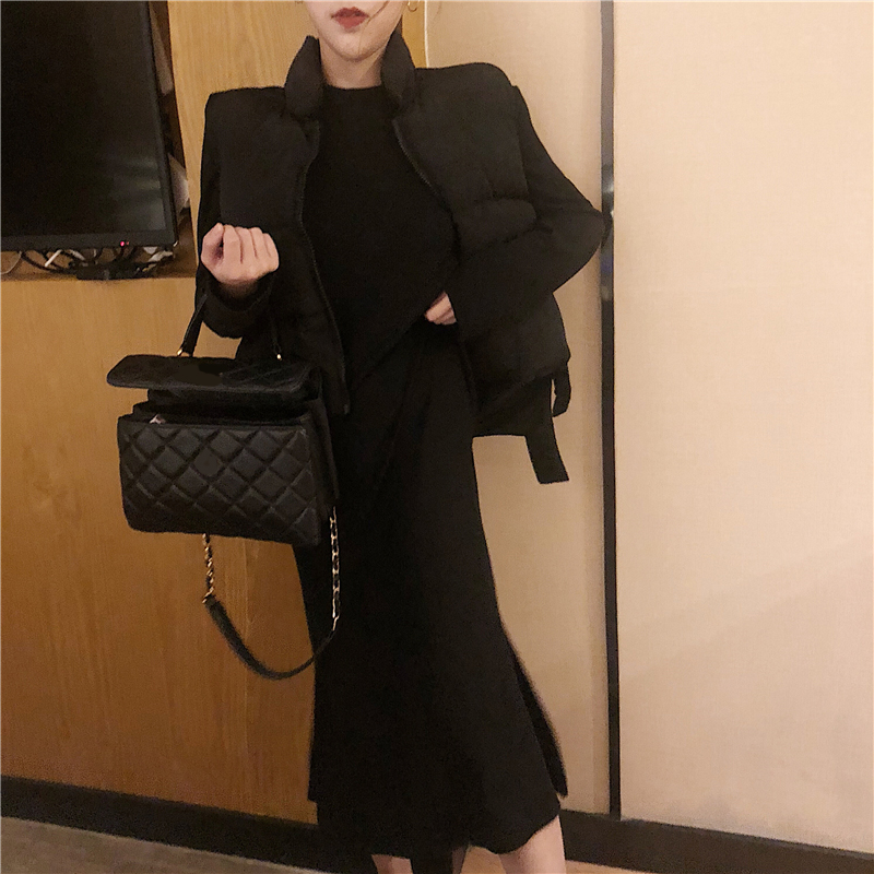 / 秋季新款韓版chic短款棉服馬夾外套純色長袖連衣裙打底裙時尚套裝