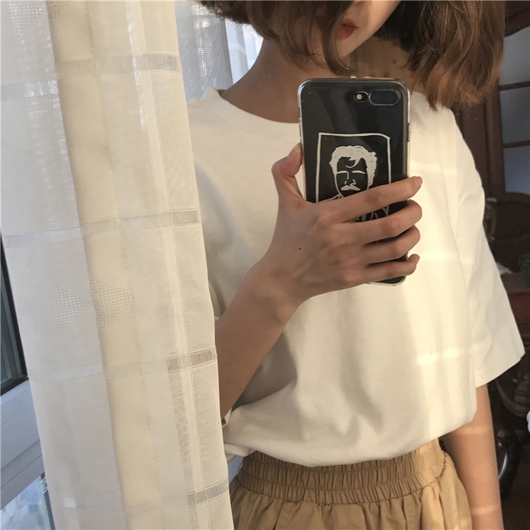 / 春裝女裝韓版寬松復古百搭基礎款純色短袖T恤學生上衣圓領打底衫