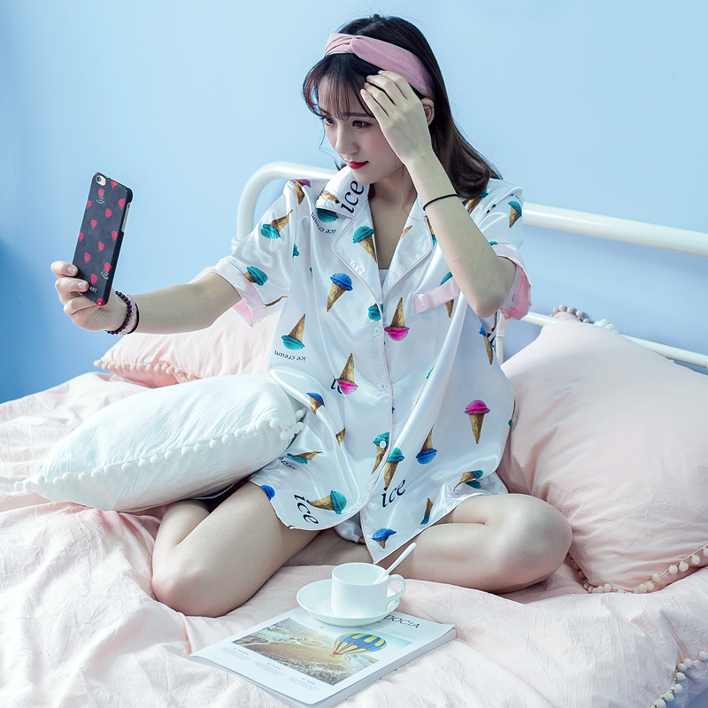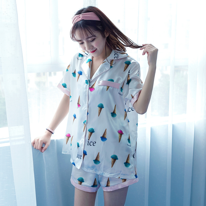 / 夏裝新款韓版女裝家居套裝卡通短袖上衣寬松短褲睡衣兩件套潮