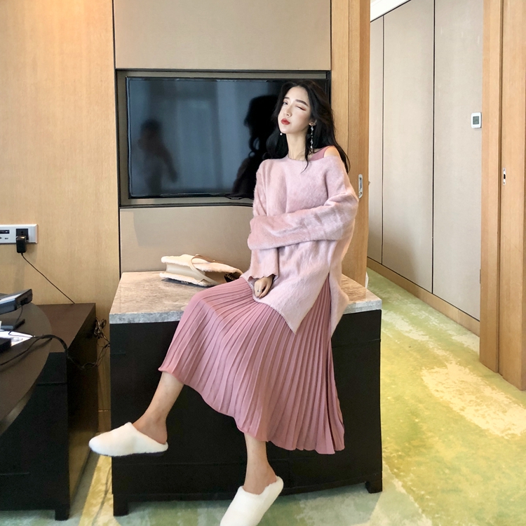 / 2018秋冬新款韓版晚晚風時尚兩件套加厚上衣背心壓褶連衣裙套裝女