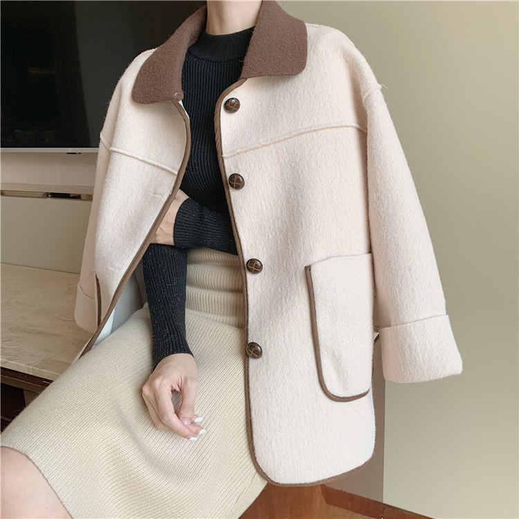 復古港味2018秋冬新款加厚保暖時尚寬松長袖百搭撞色外套閨蜜裝女
