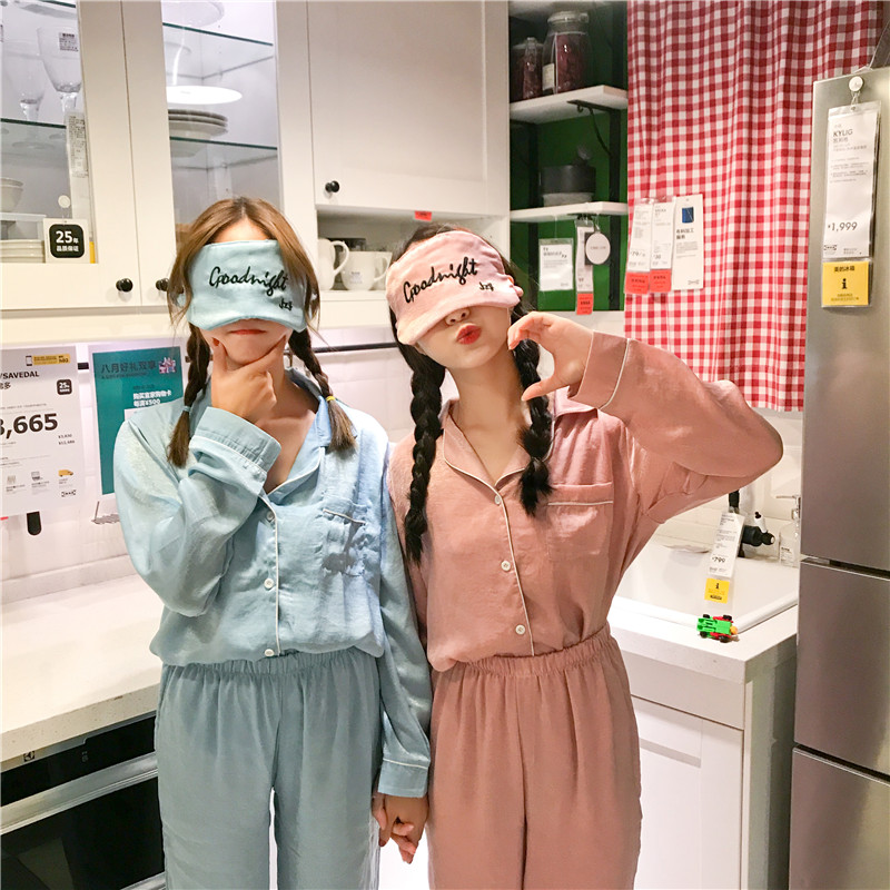 / 韓版秋裝時尚小清新可愛卡通長袖睡衣套裝學生休閑家居服兩件套女