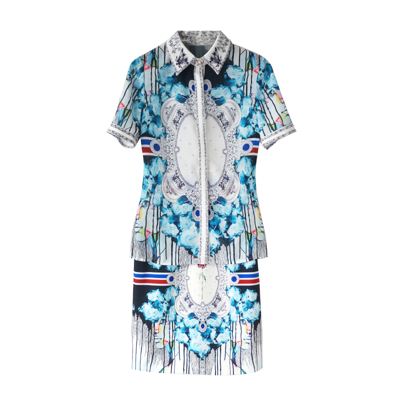 名媛套裝女2018夏裝新款復古印花套裝裙氣質女神范網紅兩件套時尚