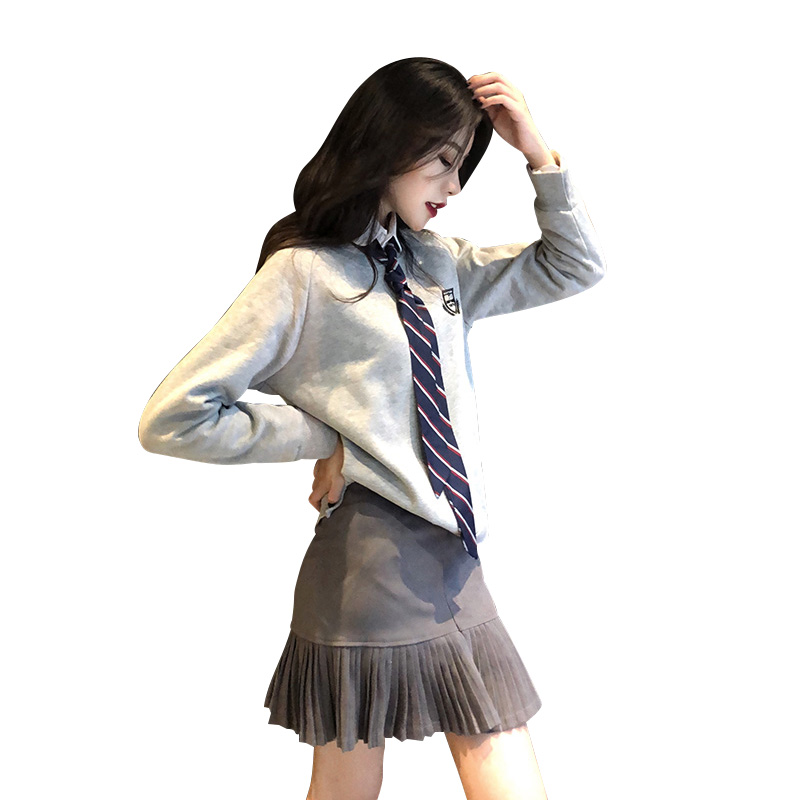 / 乖乖少女感學院風加絨衛衣甜美減齡百褶裙半身裙時尚套裝兩件套潮