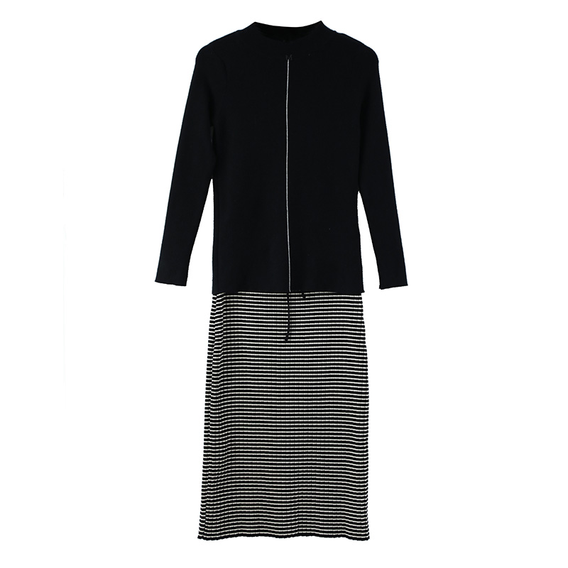 輕熟風女裝套裝長袖秋季針織2018新款秋裝毛衣套裝兩件套條紋裙子