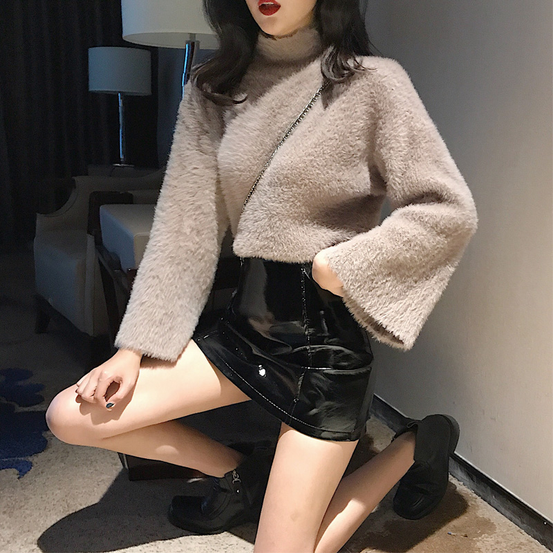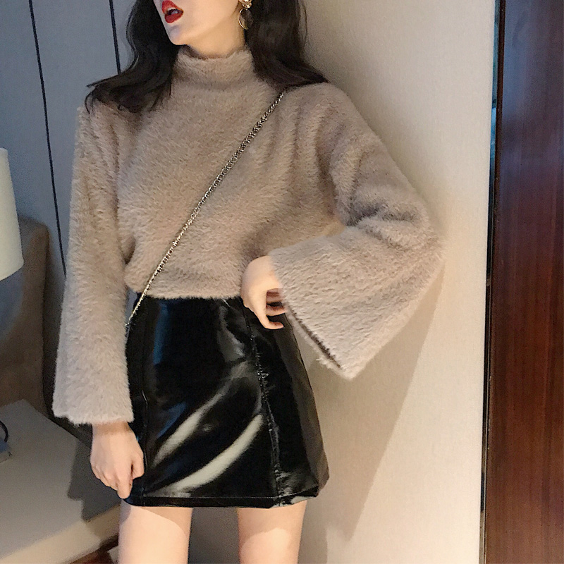 港味慵懶風毛衣女半高領寬松顯瘦復古chic新款針織衫喇叭袖上衣潮