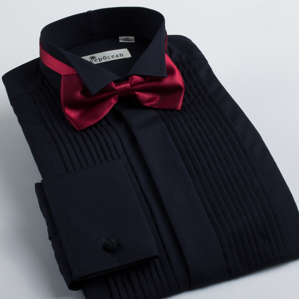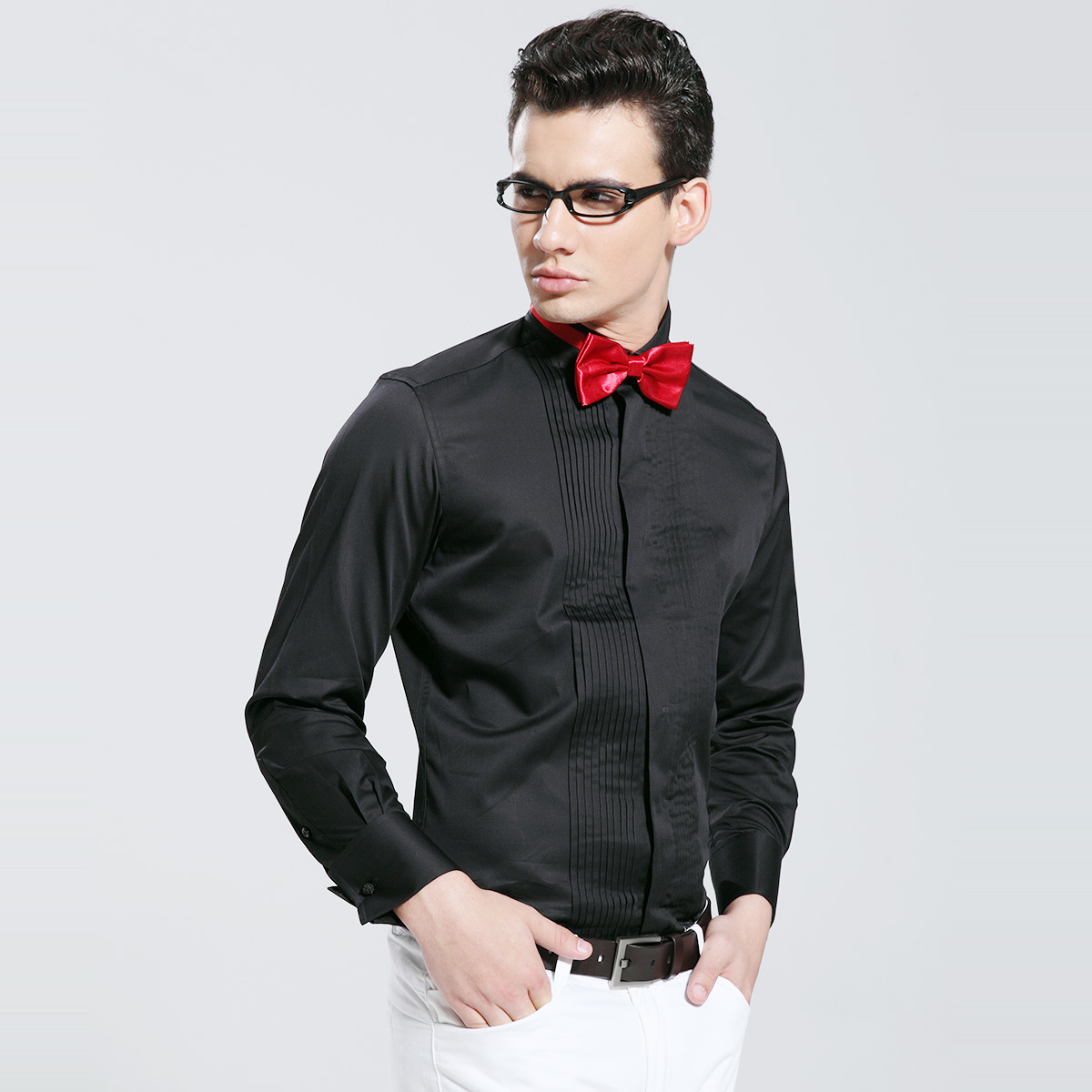 / 白色蝴蝶結襯衫男士結婚新郎禮服燕子領長袖襯衣法式袖扣商務正裝