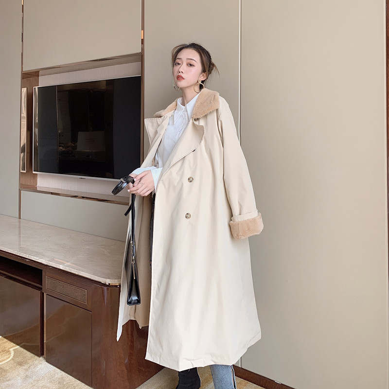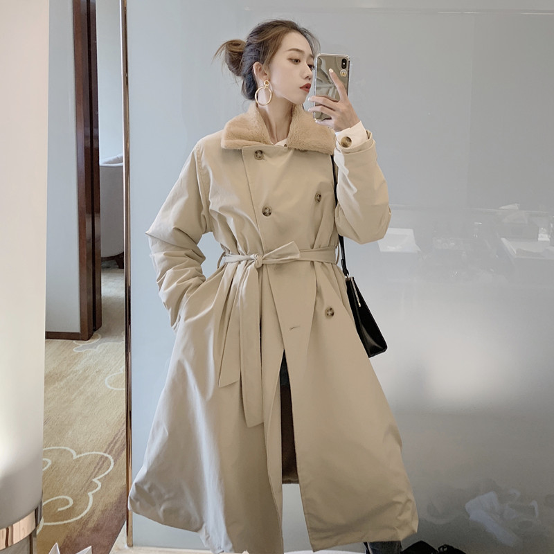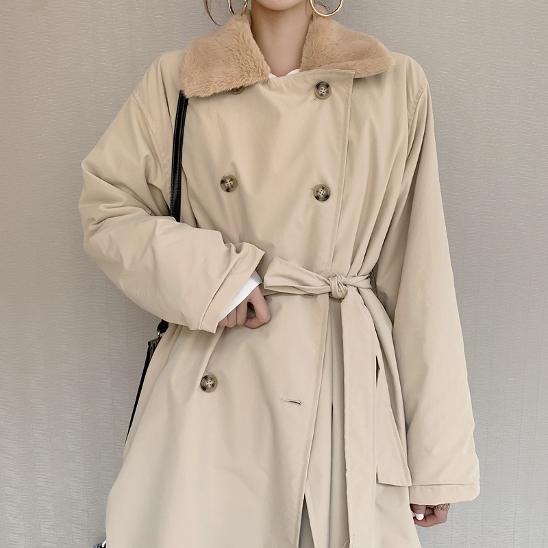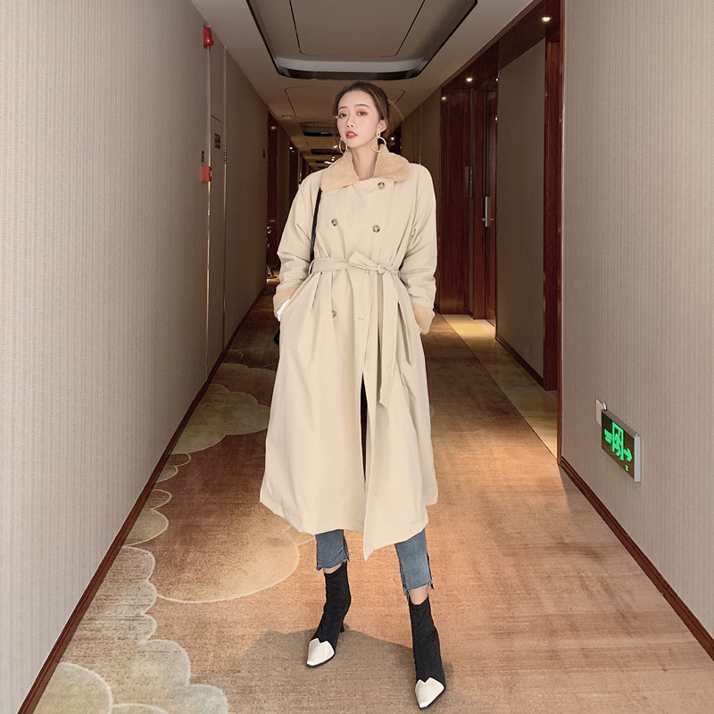 / 2018小香風冬季新款寬松中長款加厚chic大衣百搭系帶風衣外套女裝
