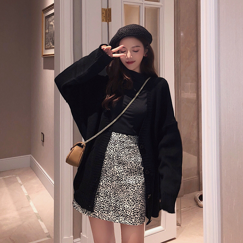 杏色開衫|黑色開衫|桔紅開衫|杏色打底衫|燕麥色打底衫|黑色打底衫|黑色半身裙|杏色半身裙|豹紋半身裙