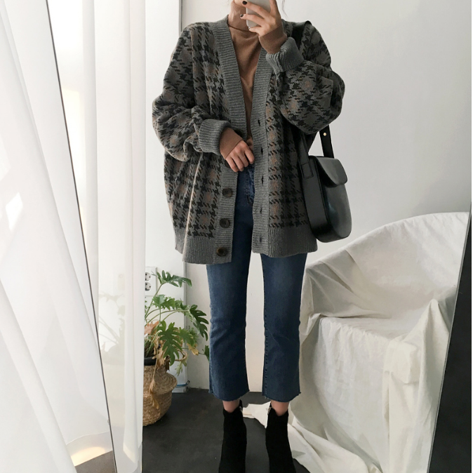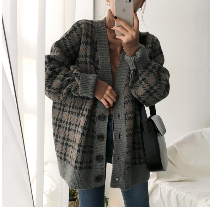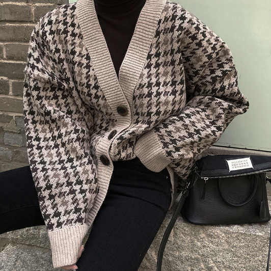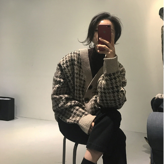 / 2018秋裝時尚chic復古韓國千鳥格針織開衫氣質小香風時尚百搭外套