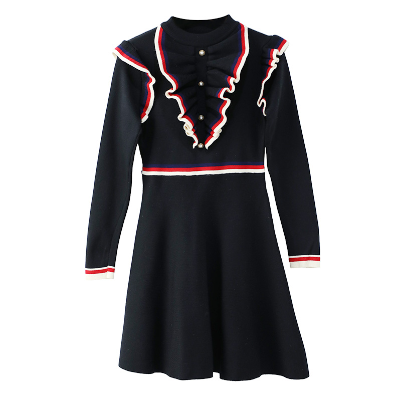 針織連衣裙女秋冬季2018秋裝新款長袖法式氣質打底毛衣裙女裝裙子